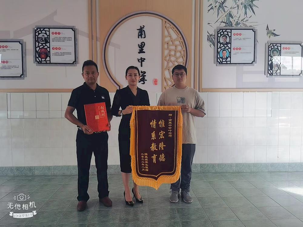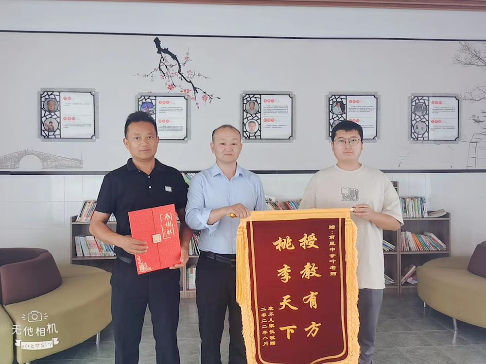 在同一日,初一(15)班的李亚桐老师也收到了来自学生家长的锦旗。家长表示初一是孩子初中三年培养习惯最为关键的一环,李老师和学校领导不仅重视知识教育还重视素质教育,对学校表示了感谢之情。